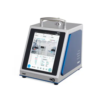 The PMT® 0.1 µm Airborne Particle Counter A010 is a portable, high-performance device for continuous air quality monitoring in cleanrooms and sensitive environments, capable of detecting particles as small as 0.1 µm and compliant with ISO and Fed-Std standards.