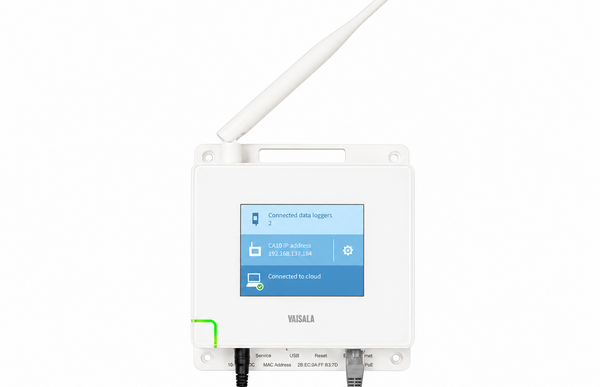 Der CA10 kann bis zu 32 drahtlose CWL100-Datenlogger gleichzeitig mit der Vaisala Jade Smart Cloud verbinden. Er nutzt die LoRa™-Funktechnologie, die eine hohe Reichweite von typischerweise über 100 Metern in Innenräumen ermöglicht.